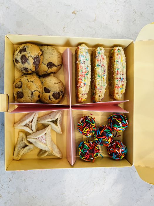 4 מיני קוקיז, 5 אוזני המן, 5 כדורי שוקולד בטעמים משתנים, 3 מגולגולת ספרינקלס 🤹🏻