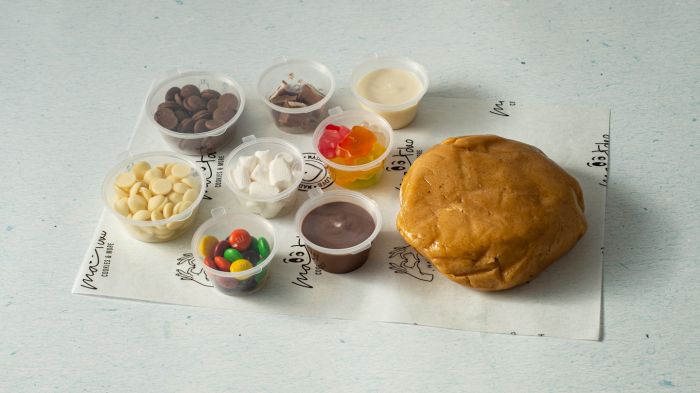 גלינו שלאפות יחד עם כל המשפחה זה פשוט כיף יותר! הערכה כוללת בצק עוגיות (כ 10 עוגיות קטנות),שוקולדצ'יפס לבן,שוקולדצ'יפס חלב,סוכריות צבעוניות, קינדר, מרשמלו, M&M, ממרח שוקולד חלב, ממרח שוקולד לבן.